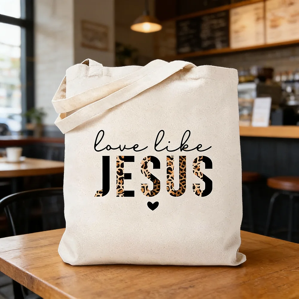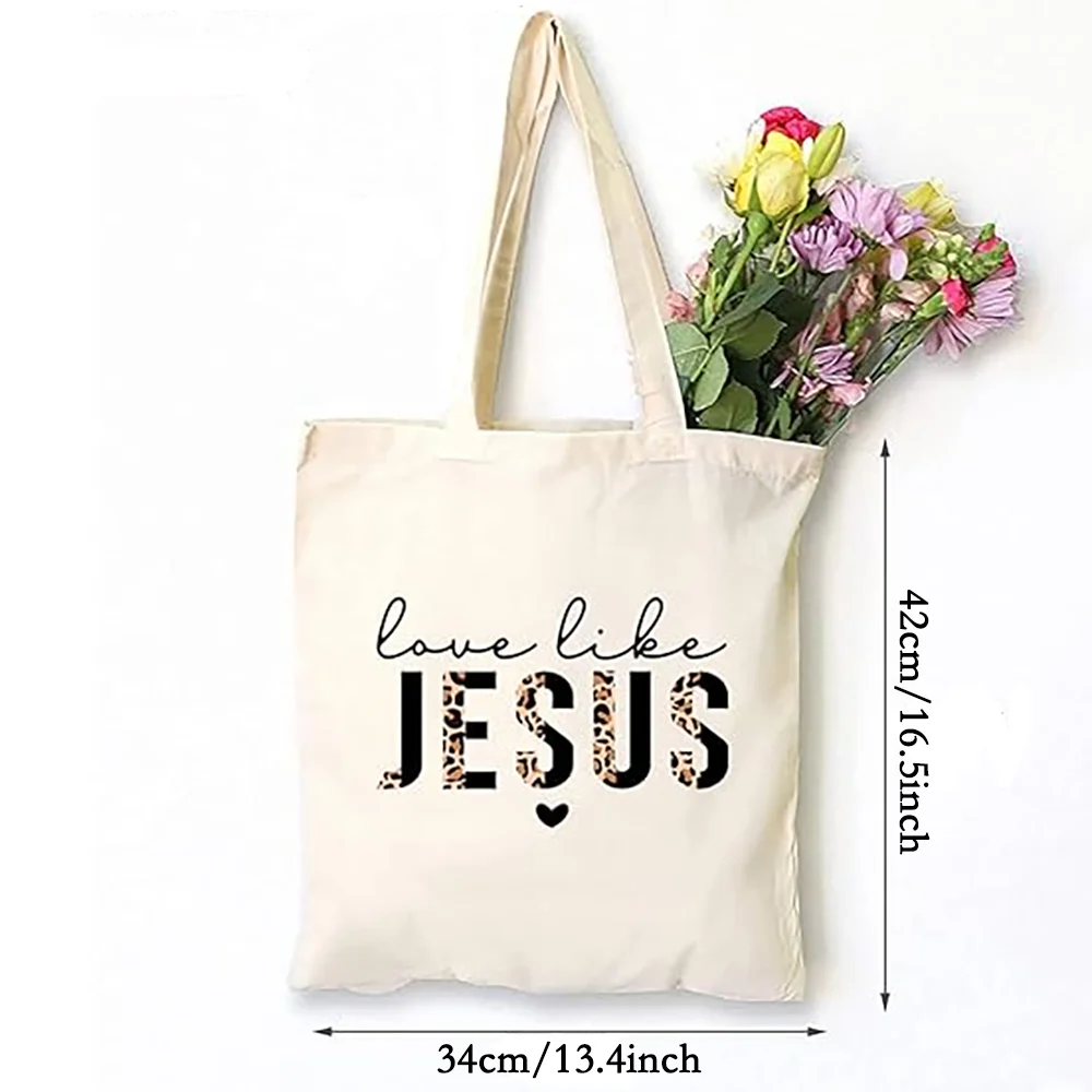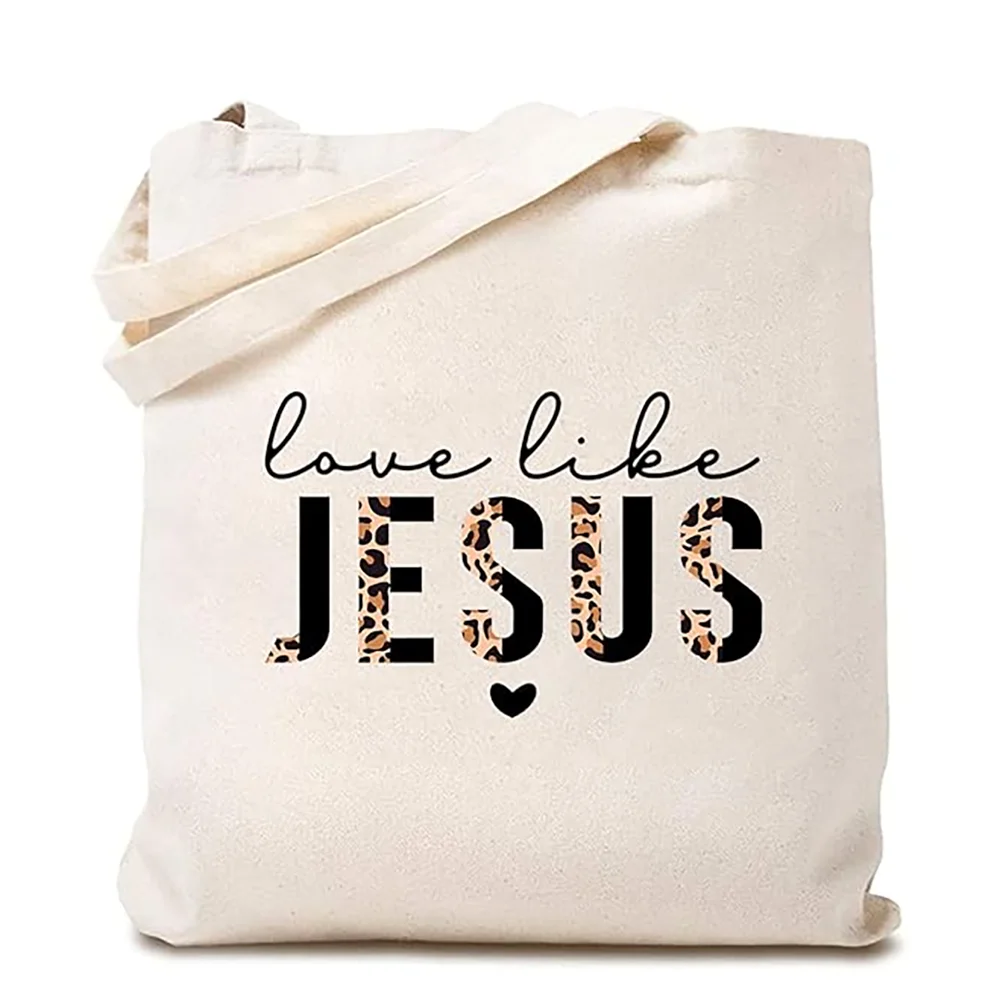 Love Like Jesus Canvas Tote Bag Half Leopard Black Letters Funny Bible Quotes Ch